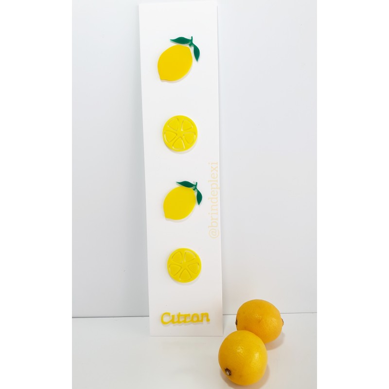 Affiche en plexiglas coloré , disposant d'une accroche autocollante munie d'un crochet métallique à l'arrière pour suspendre.