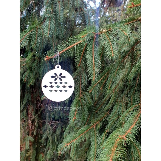 Boule de Noël  à suspendre réalisée en plexiglas et en 2D , épaisseur de la matière : 3mm  ht 11 x 10 cm.  Pmma traité Uv pour une utilisation intérieure ou extérieure.