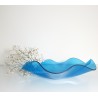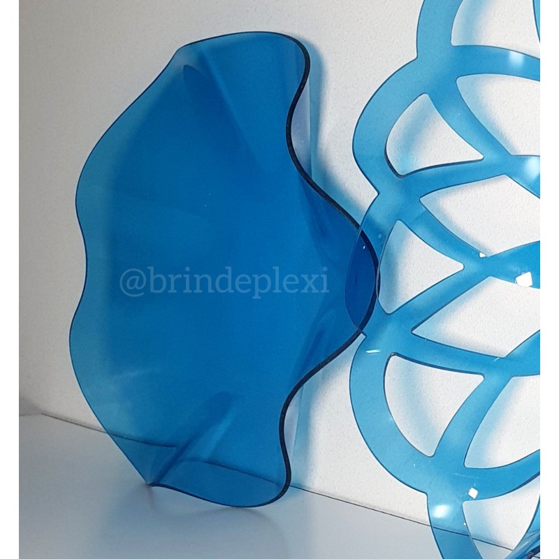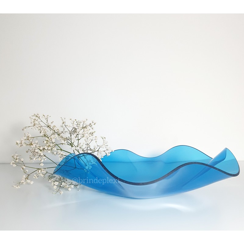 Nos coupelles sont fabriquées en plexi bleu transparent et formées une à une à la main. Chaque coupelle est unique et possède ses propres lignes et ses propres courbes. Nous ne pourrons pas garantir que le produit reçu soit identique aux photos présentées. Le diamètre de ce récipient est de 30 cm. La matière utilisée est certifiée de contact alimentaire. C’est un matériau aussi joli que le verre et moins sensible à la casse.