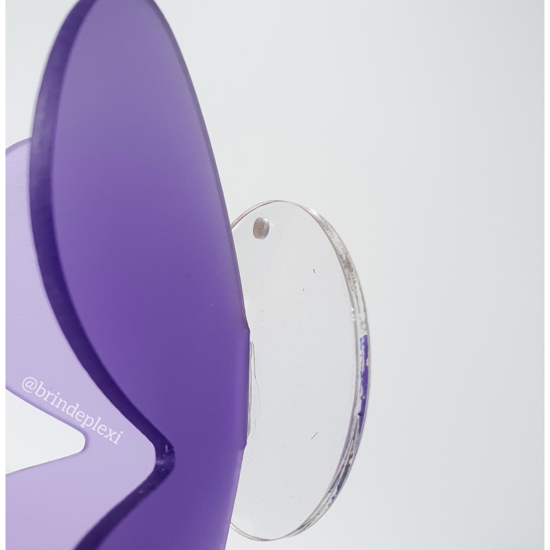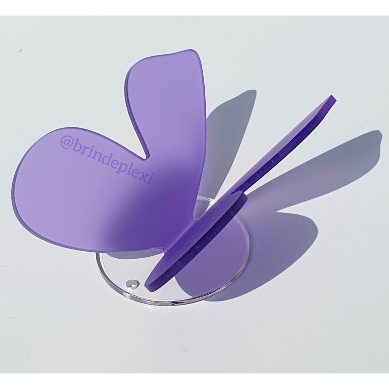 Papillon de couleur en plexiglas 3 mm, que l'on peut accrocher au mur à l'aide d'un clou ou bien suspendre avec un joli nœud. Coloris lavande - violet mat satiné.